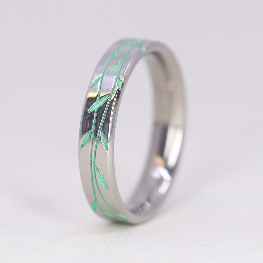 Titanium Floral Vine Patterned Flat Polished Court Unisex Wedding Ring - The Chelsea Park - Made-to-Order