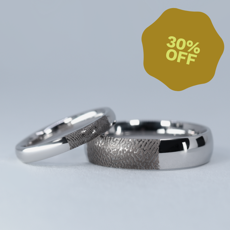 Wedding Ring Set - The Ruskin 2.0 - Slim & Wide Stainless Steel Fingerprint Rings